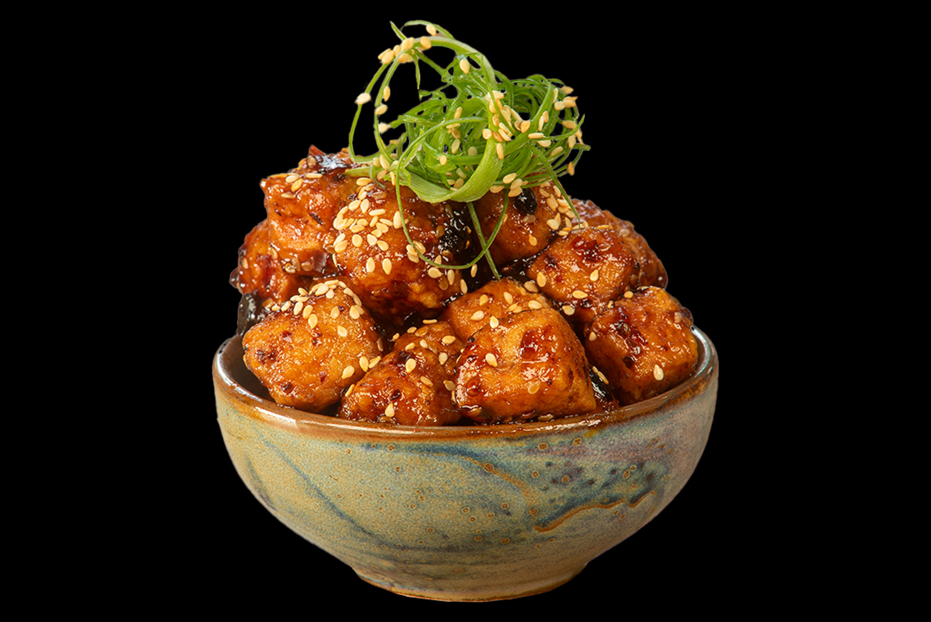 smażone tofu w słodko pikantnym sosie (tofu / sezam / dymka)